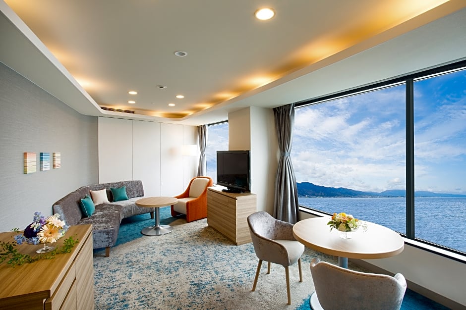 EIZAN Floor Suite Twin for 1 Pax is 646 square feet and includes 2 single beds 80-130 width plus living room, hairdryer, safe, bathrobes, and slippers and is Wheelchair-accessible.